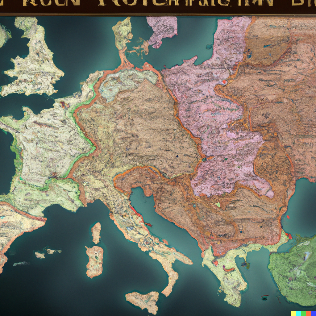 - The maps I’ve generated show an interesting tendency to distort geometries in an unpredictable, inconsistent way. The systems learn shapes from existing maps and generate similar ones that are still recognisable, but also different, like in a sort of counterfactual cartography. I particularly love the maps of Italy, in which both the country and the decorative objects are mangled, inconsistent, and malleable like perceptions in dreams. This is perhaps why many of these images feel like a cheap, run-of-the-mill imitation of surrealism.